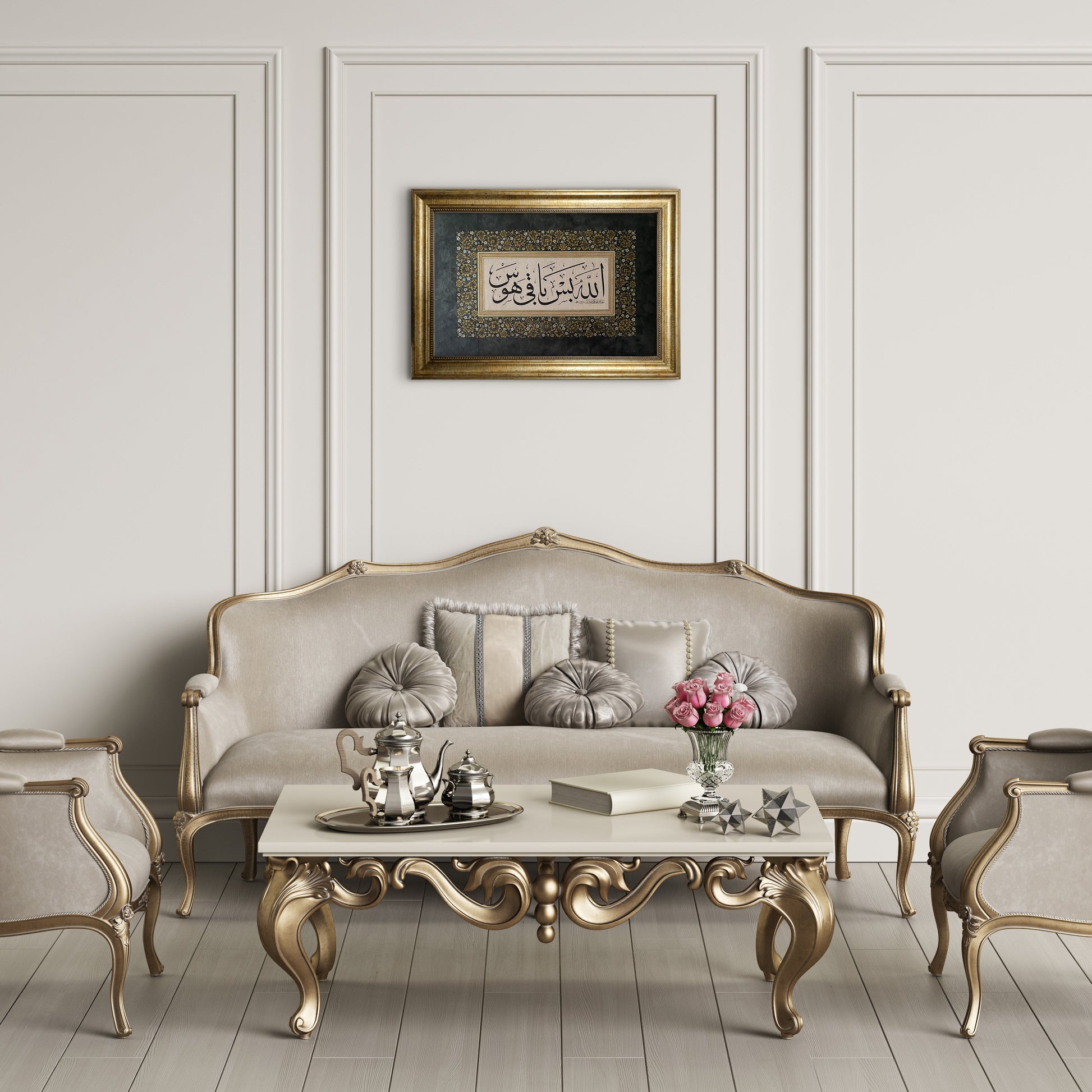 - WALL ART FEATURE: Classic ring gold scan work has been done on this Islamic wall art. This unique wall art is made on thick artistic paper with a cat hair brush, using 24-carat yellow gold and various paints. This Islamic home decor was scanned with high-quality resolution and the image details were clearly conveyed. After scanning, these magnificent Islamic posters were printed on torchon artistic paper.