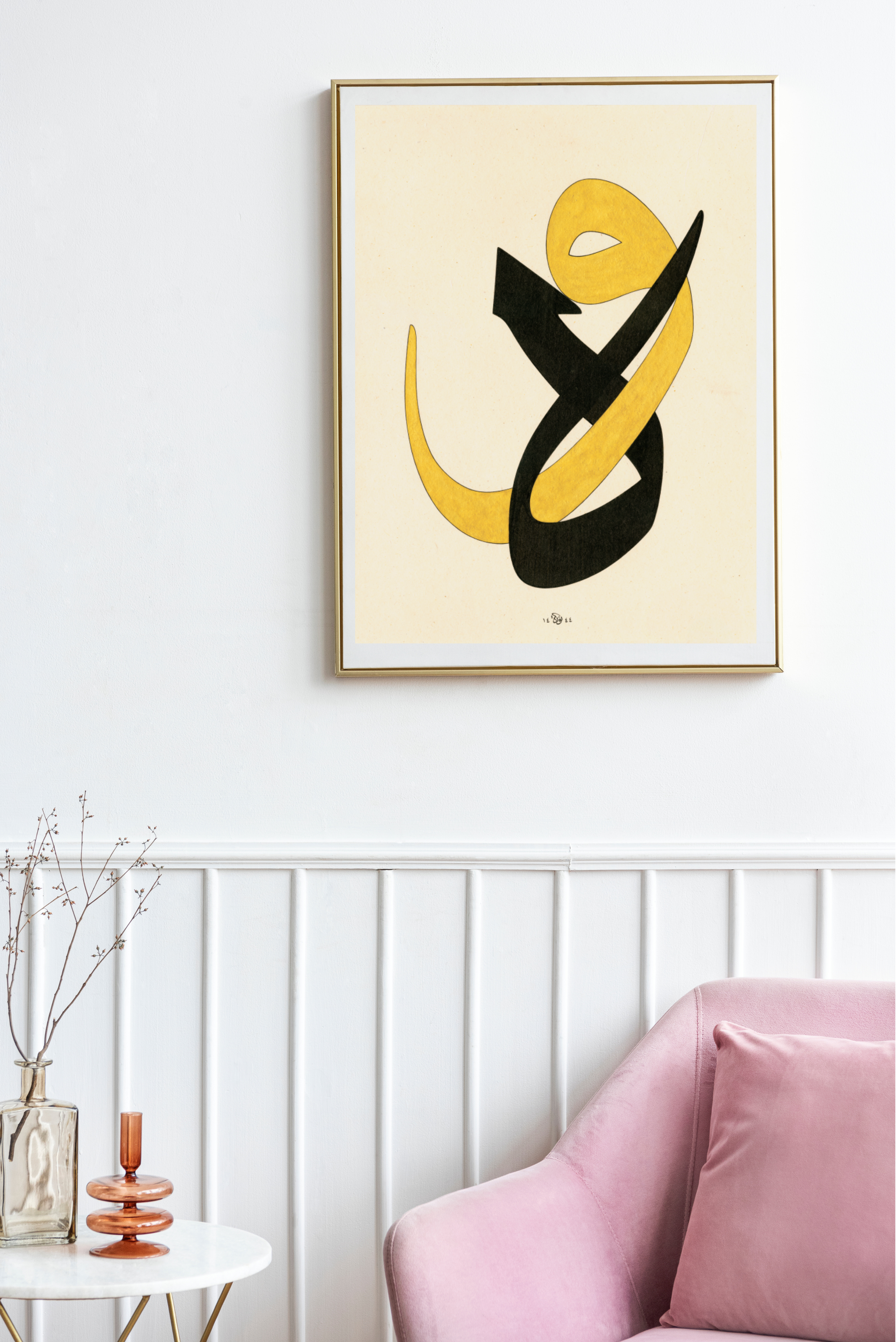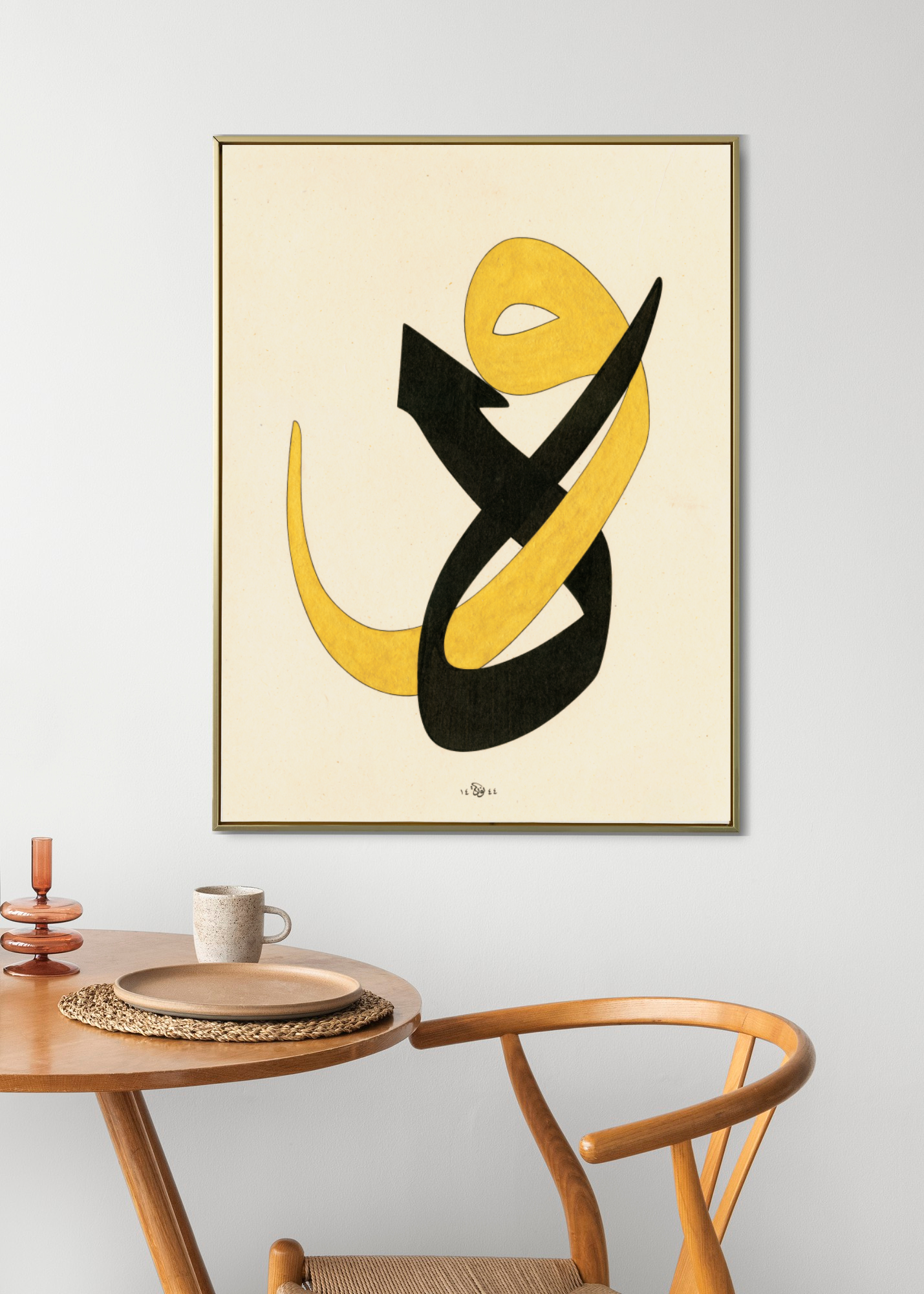 Bu eser, İlahi İsimlerden biri olan Huwa’yı oluşturan iki harfi, hâ ve vâv harflerini görsel olarak temsil etmektedir. “Biz harflerdik, yüce! Henüz söylenmemiştik.” dizelerinden ilham alınarak, eser, bu iki harfin izole formlarından Huwa kelimesine dönüşümünü keşfeder. Harfler, bir diyalog içindeymiş gibi farklı biçimler ve şekiller alarak nihayetinde İlahi’yi ifade eden kelimede birleşir.