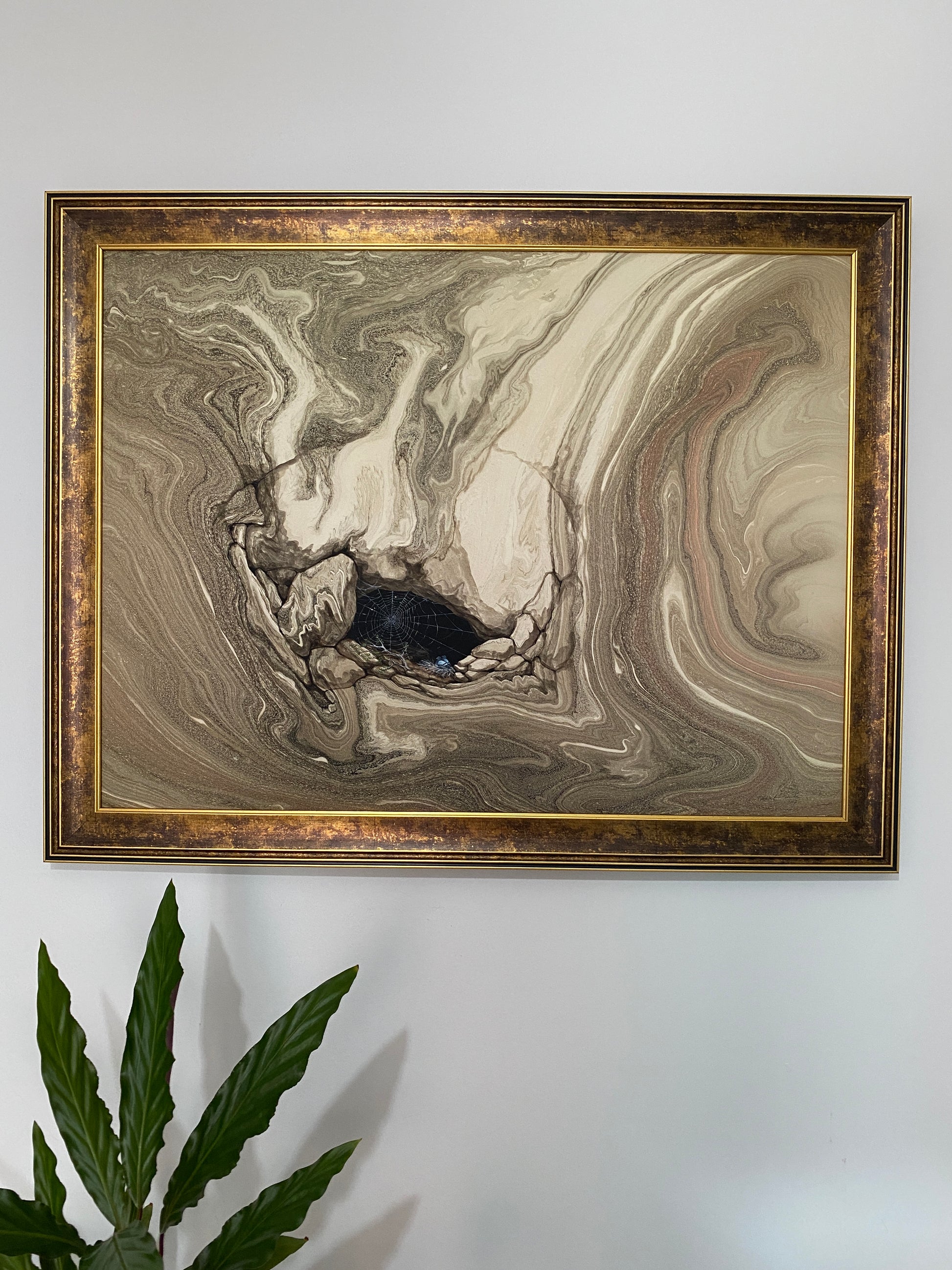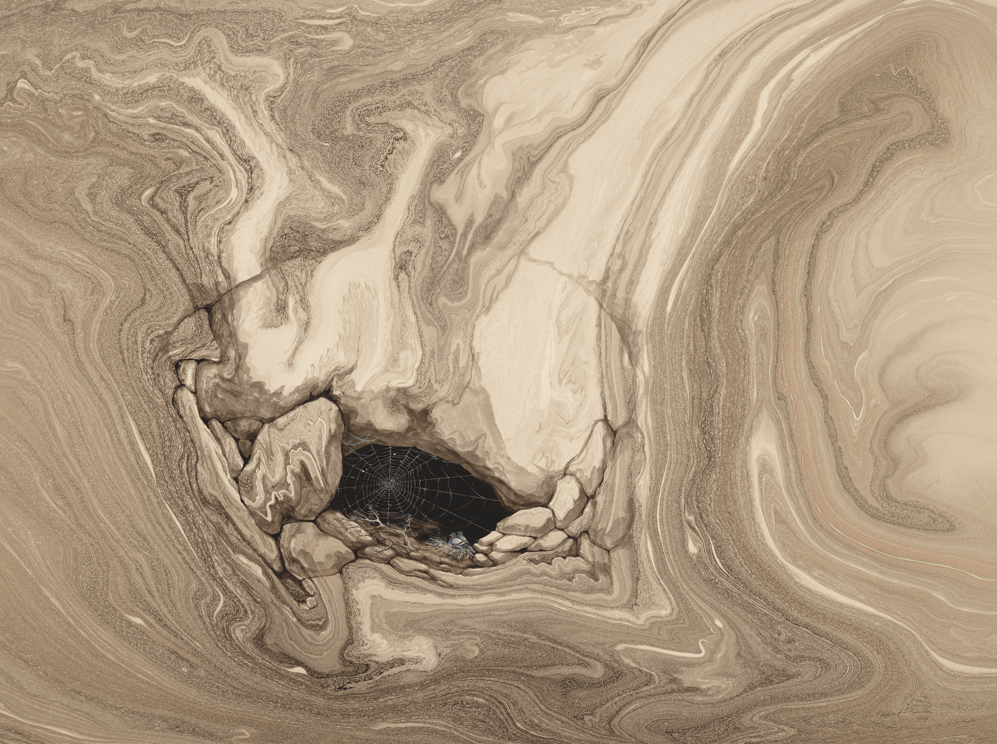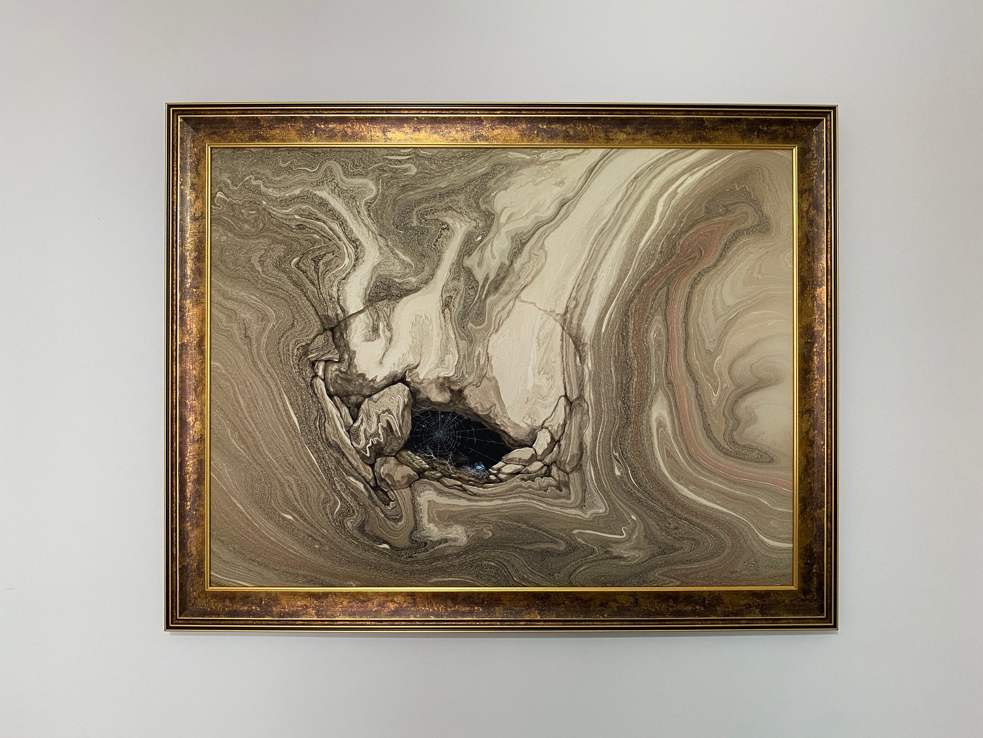 Sevr Mağarası adlı bu eser, inancın ve ilahi korumanın bir sembolü olarak durmaktadır. Hassas desenler ve uyumlu renkler, örümcek ağı ve güvercinlerle iki yol arkadaşını koruyan ilahi müdahaleyi betimlemektedir.